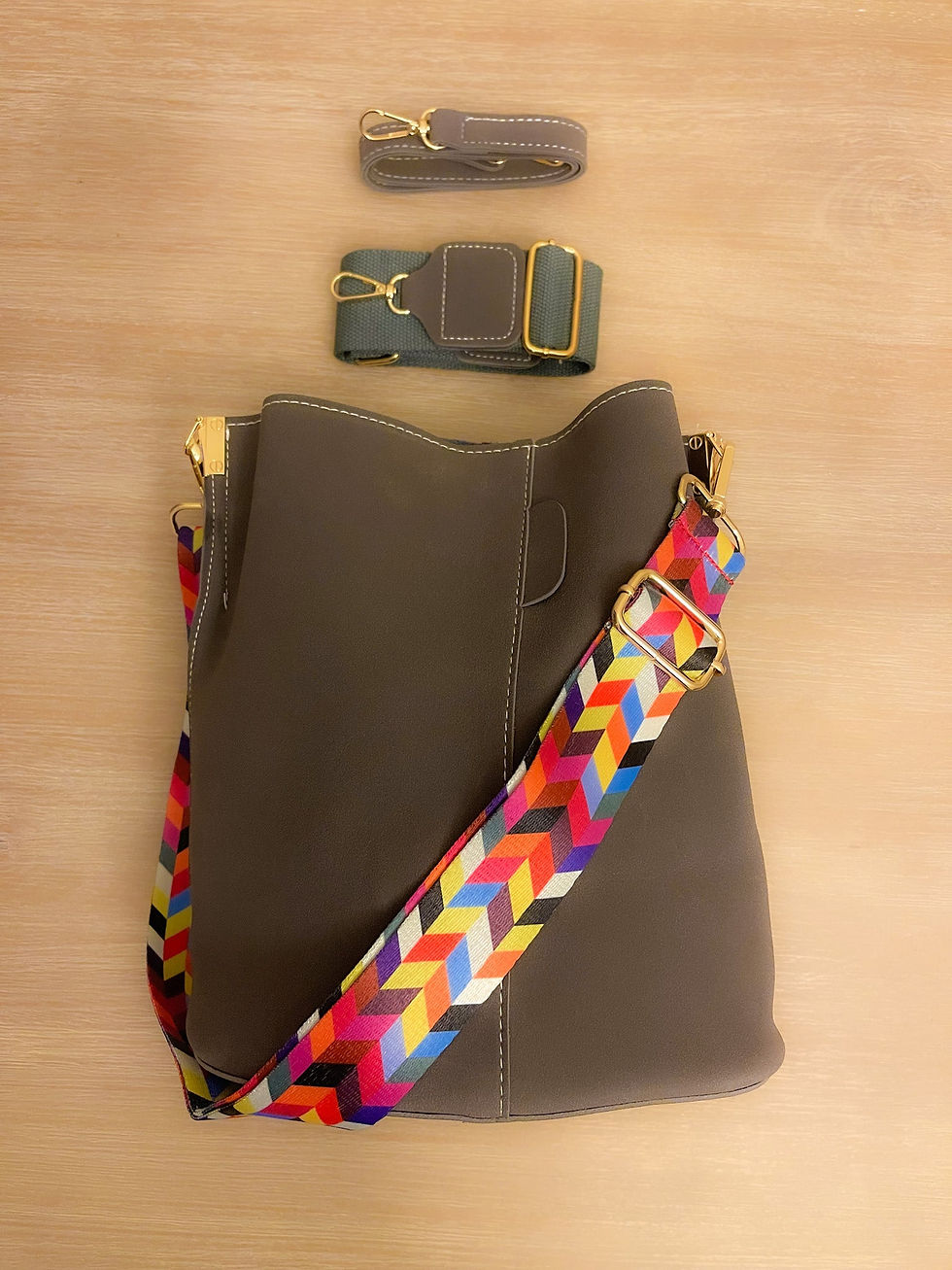 Color: gray, dark blue, brown, pink, orange, green